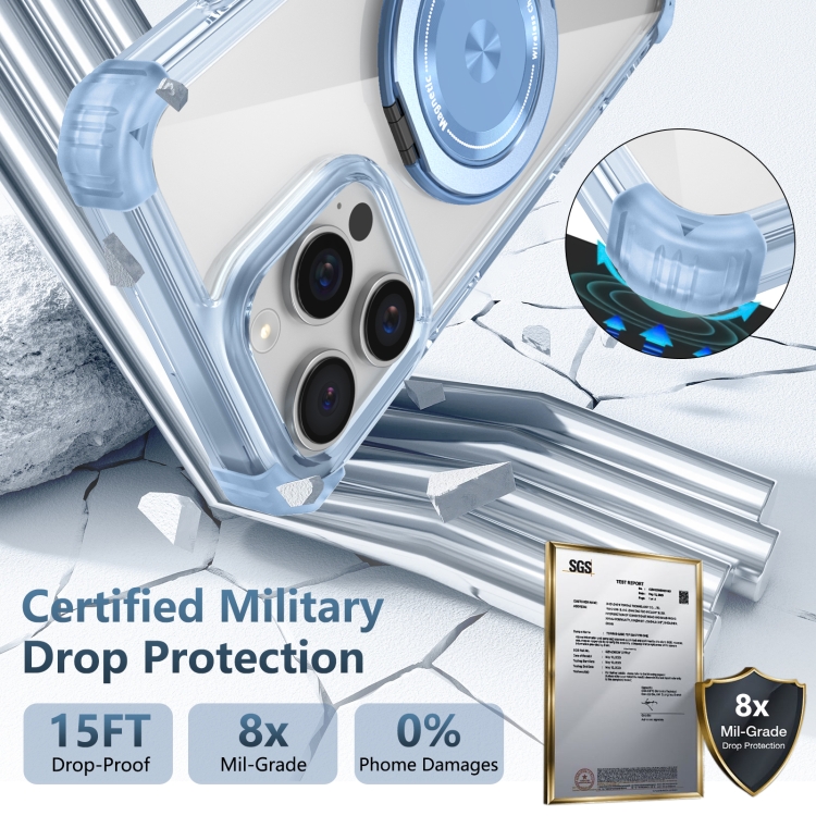 Estuche Magnético para iPhone 16 Pro Max Gold Shield Cd Pattern Magsafe con Soporte Giratorio (Azul Transparente)
