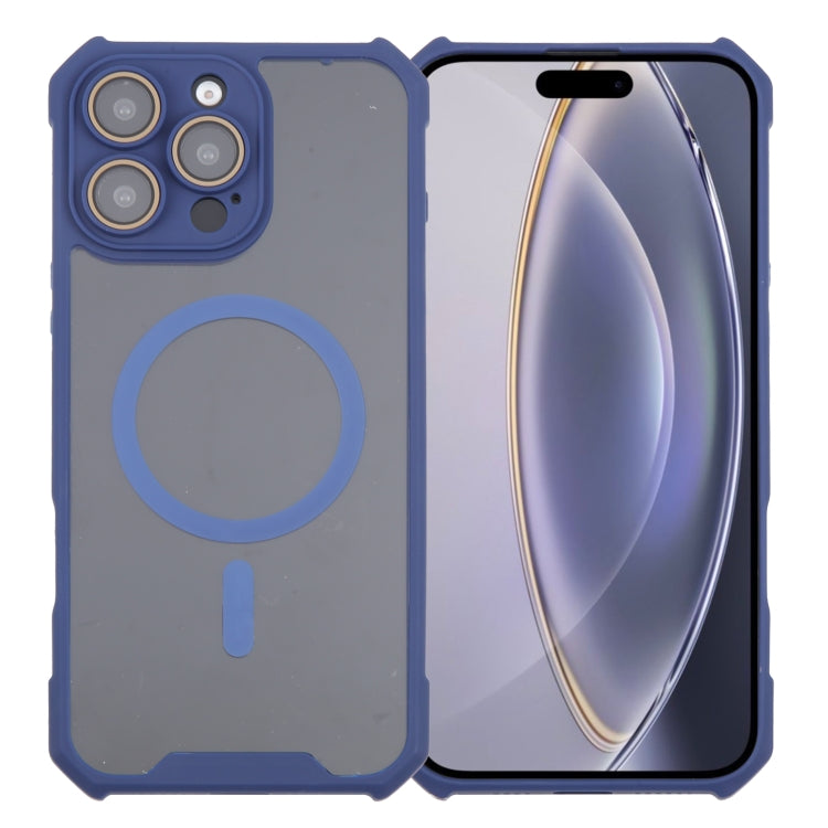 Funda para iPhone 16 Pro Max Acrílico + TPU Bocina Magnética Magsafe Película de Lente Dos Colores (Azul)
