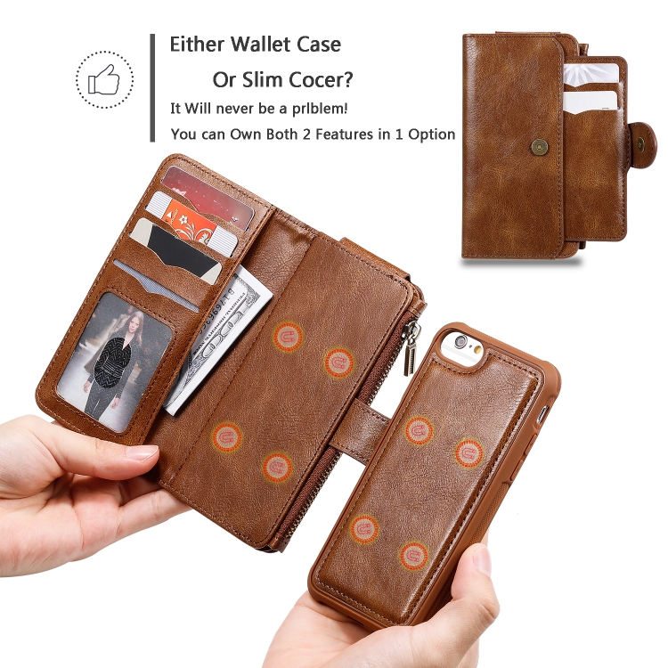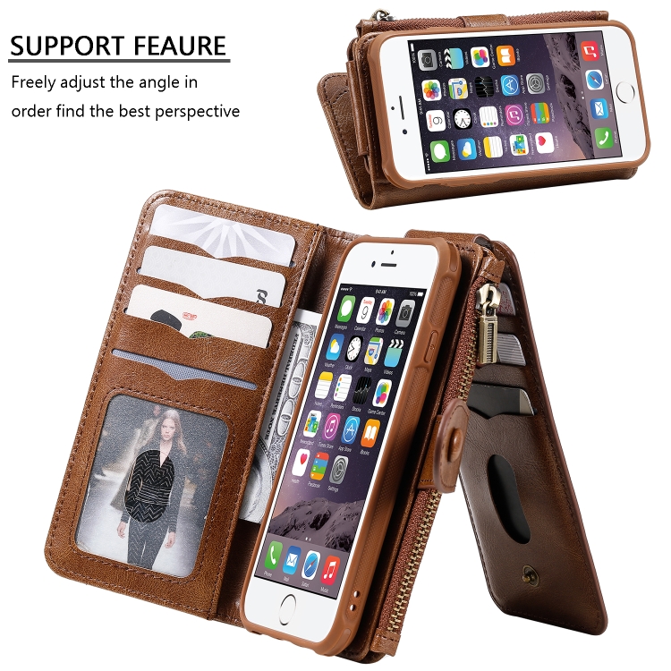 Funda para iPhone 6/7/8 Cuero Tapa Horizontal Magnética Desmontable Multifuncional (Marrón)