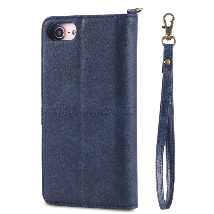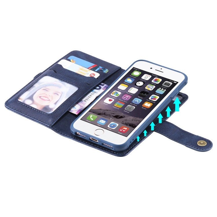 Funda de Cuero para iPhone 6/7/8 Multifuncional Desmontable Magnética Horizontal con Ranuras para Tarjetas Soporte Billetera Marco de Fotos (Azul)