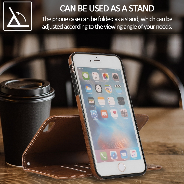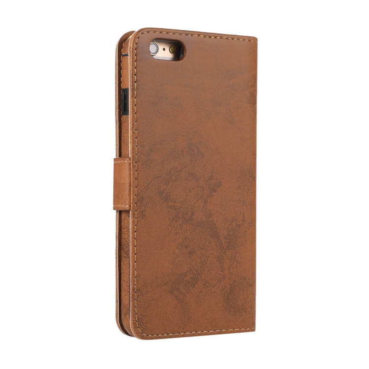 Estuche para iPhone 6 Klt888-2 Retro 2 en 1 de Cuero TPU + PU con Tapa Horizontal Magnética Desmontable Soporte Ranuras Tarjetas Marco Fotos Billetera (Marrón)