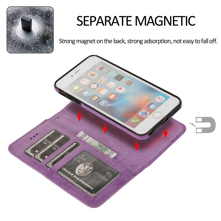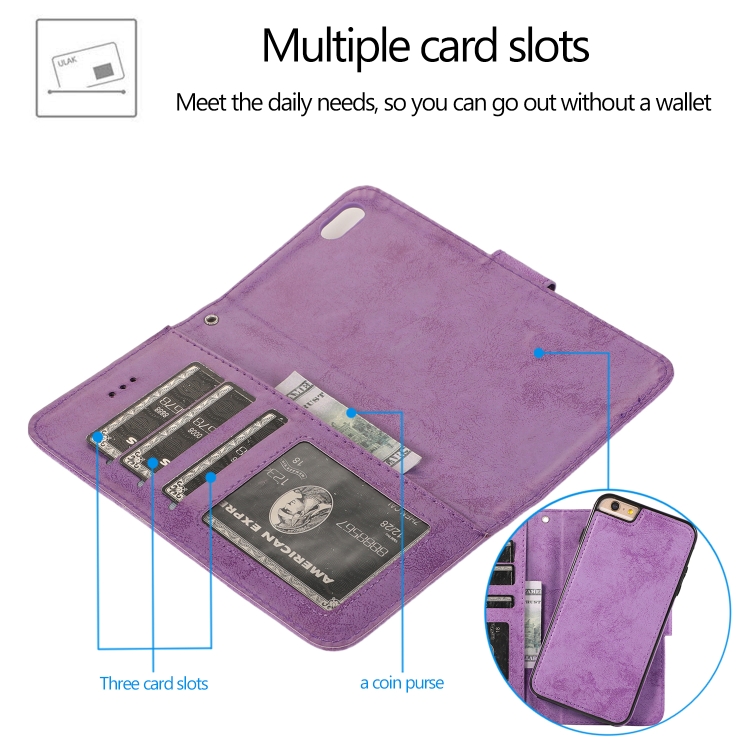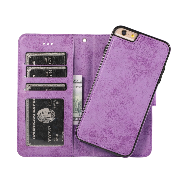 Funda para iPhone 6 Klt888-2 Retro 2 en 1 Cuero TPU + PU con Tapa Horizontal Magnética Desmontable Soporte Ranuras Tarjetas Marco Fotos Billetera (Púrpura)