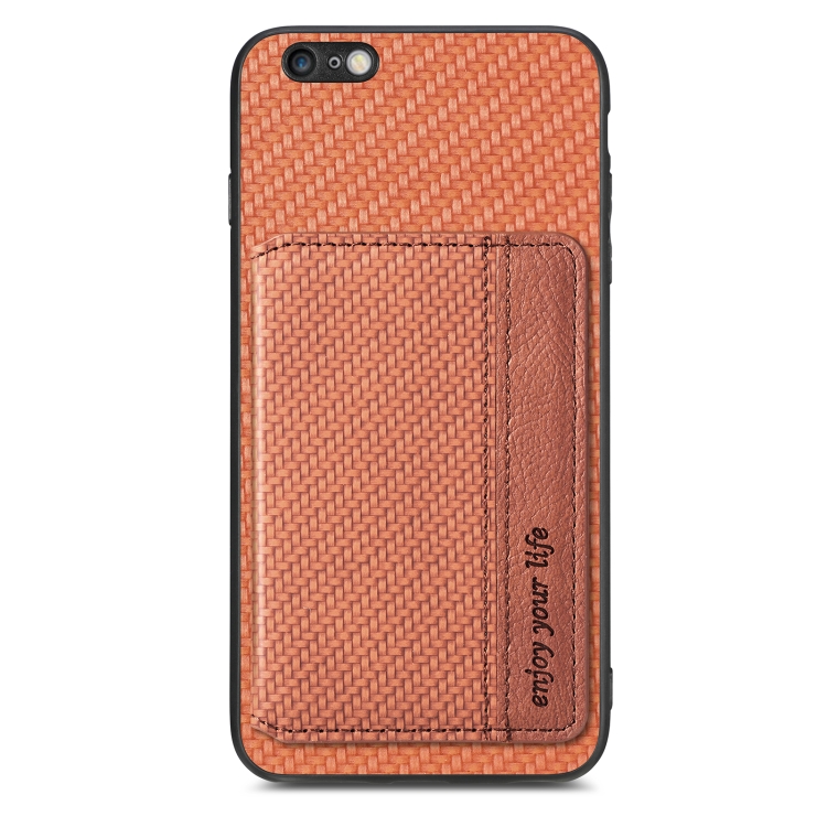 Caja de Teléfono para iPhone 6 Plus 6S Plus con Bolsa de Tarjeta Magnética de Fibra de Carbono (Marrón)