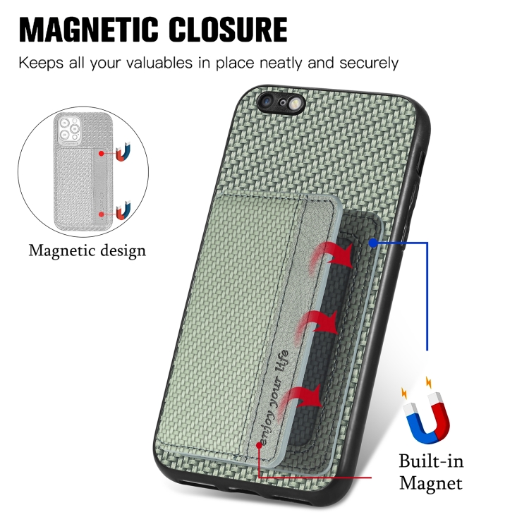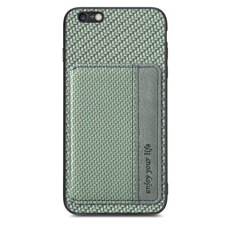 Caja de teléfono para iPhone 6 Plus 6S Plus con bolsa de tarjeta magnética de fibra de carbono (Verde)