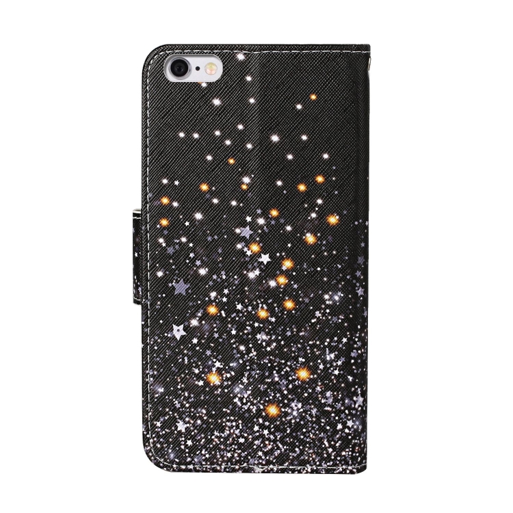 Funda de Cuero iPhone 6 Plus 6S Plus Patrón de Dibujo con Tapa Horizontal Soporte Ranuras Tarjetas Billetera (Estrella Negra)