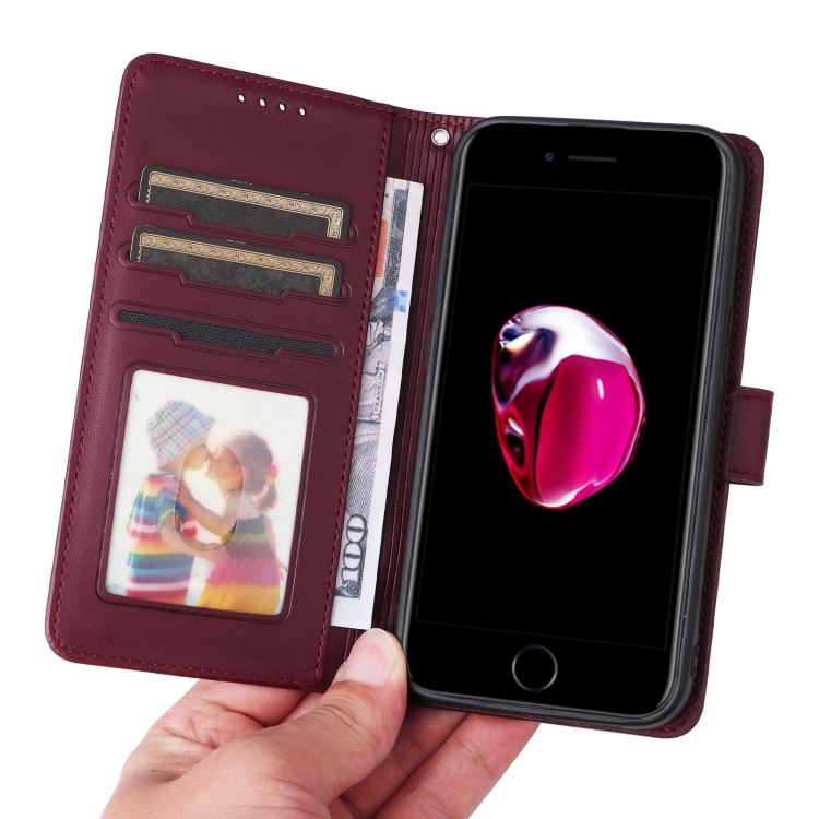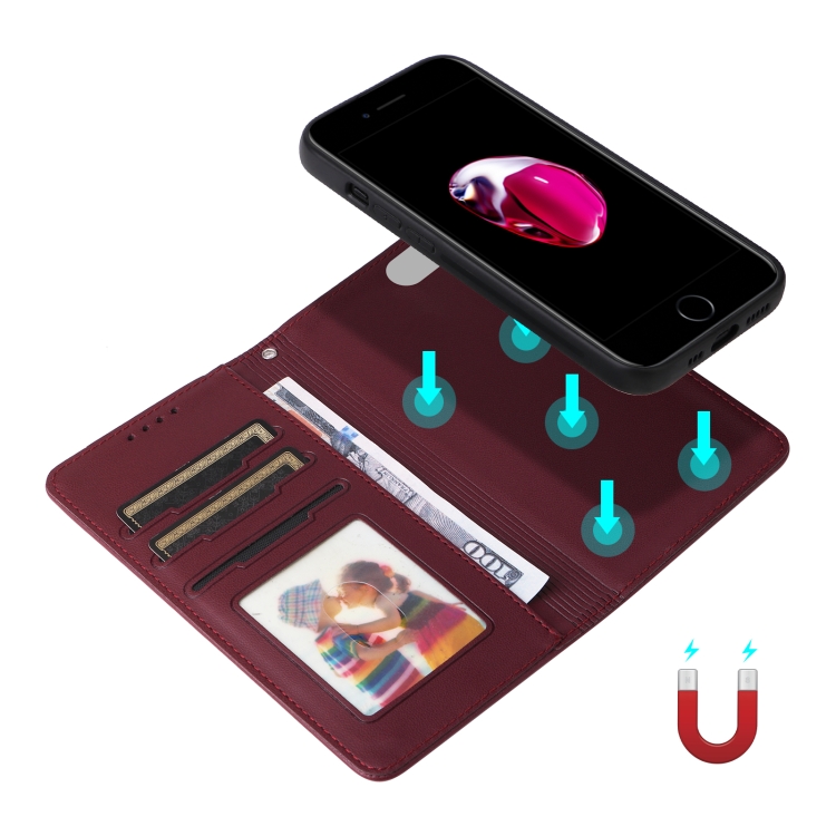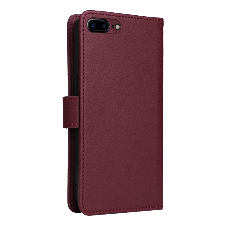 Funda de Cuero Betopnice Bn-005 para iPhone 6 Plus 7 Plus 8 Plus Desmontable 2 En 1 (Rojo Vino)