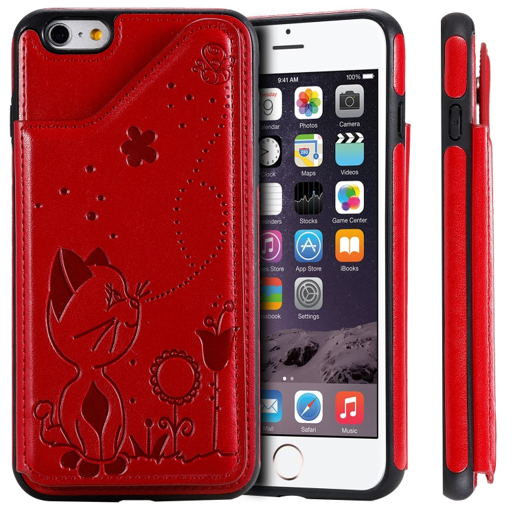 Estuche protector para iPhone 6 Plus Cat Bee con patrón en relieve, ranuras para tarjetas y marco de fotos (Rojo)