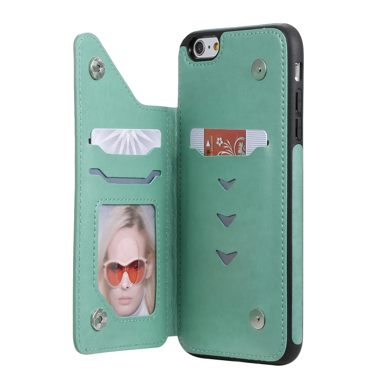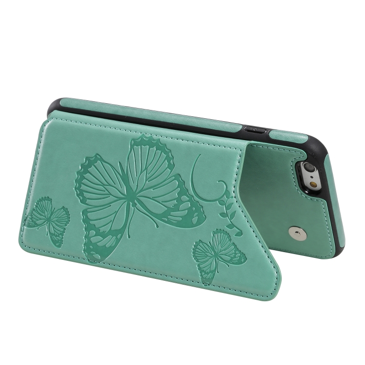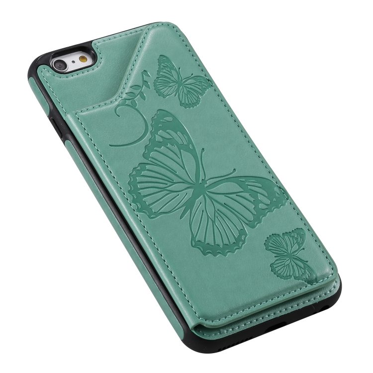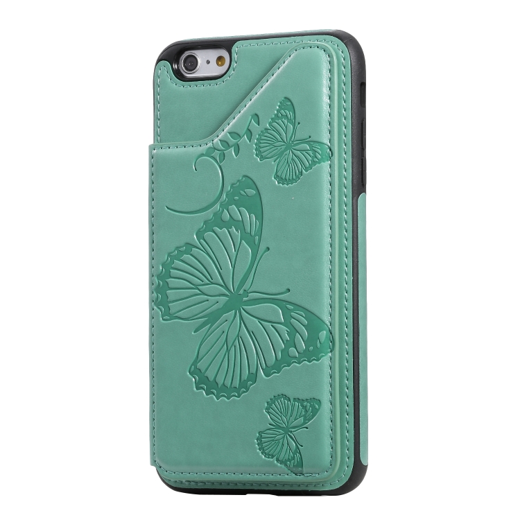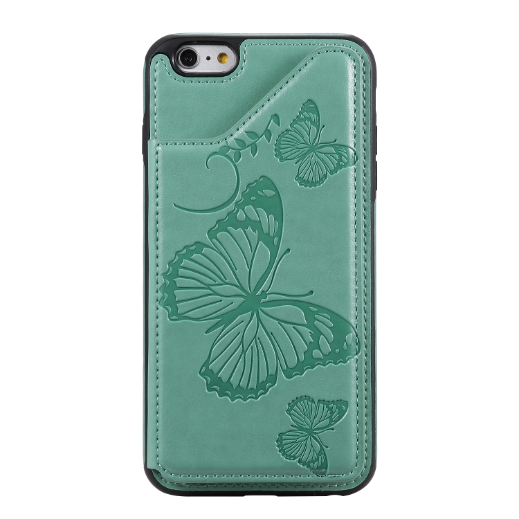 Funda Protectora iPhone 6 Plus Estampado Mariposa Soporte Ranuras Tarjetas Marco Fotos (Verde)