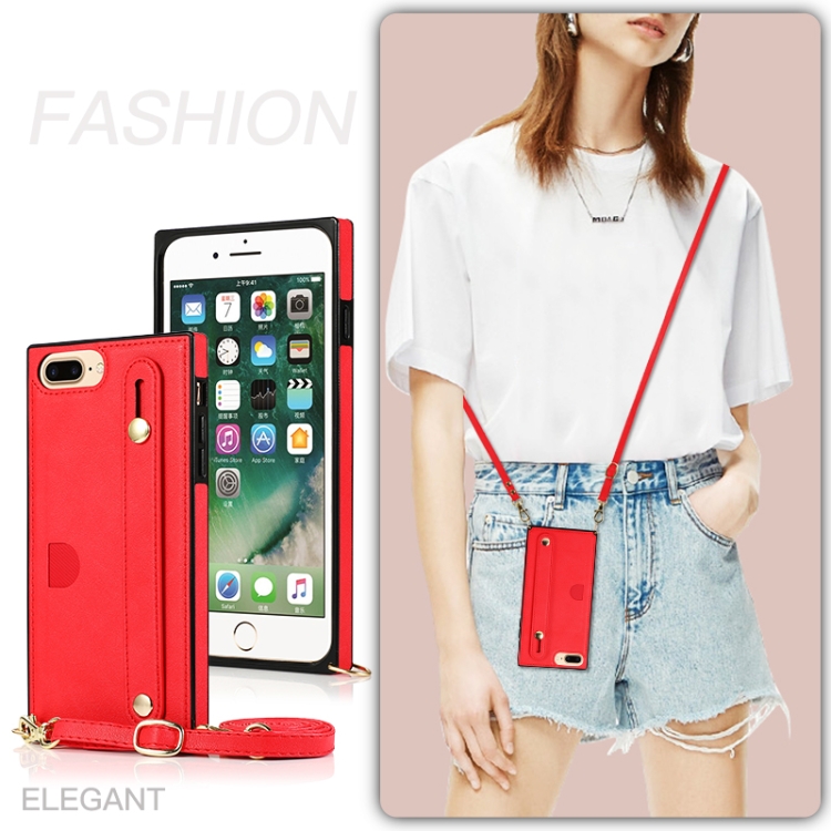 Funda Protectora para iPhone 6 Plus PU + TPU con Strap, Lanyard, Holder y Tarjeta Slot (Rojo)