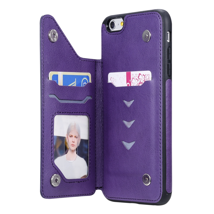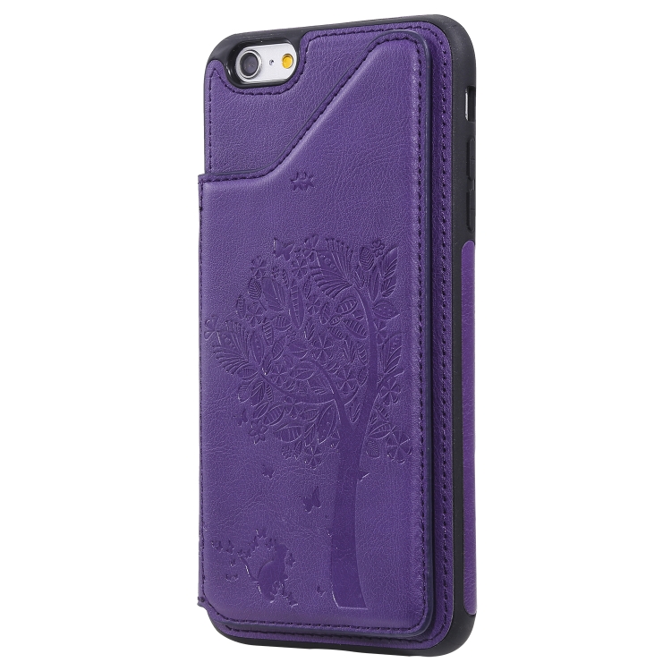 Estuche protector para iPhone 6 Plus y 6S Plus con patrón de árbol de gato, ranuras de tarjetas, marco y soporte (Púrpura)