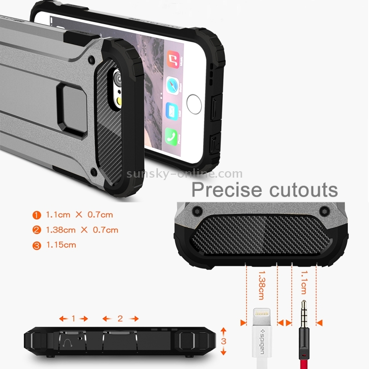 Funda para iPhone 6 Plus y 6S Plus Tough Armor TPU y PC (Gris)