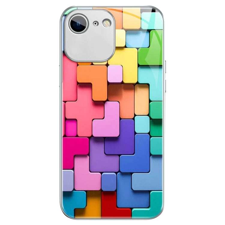 Funda para iPhone 6S Plus 6 Plus Patrón Ladrillos Juguete Vidrio a Prueba de Golpes (Plata)