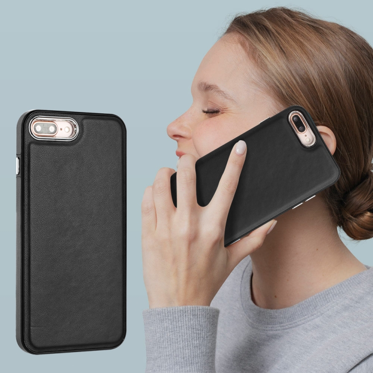 Funda de teléfono para iPhone 6S Plus 7 Plus 8 Plus con textura de cuero y cobertura total (Negro)