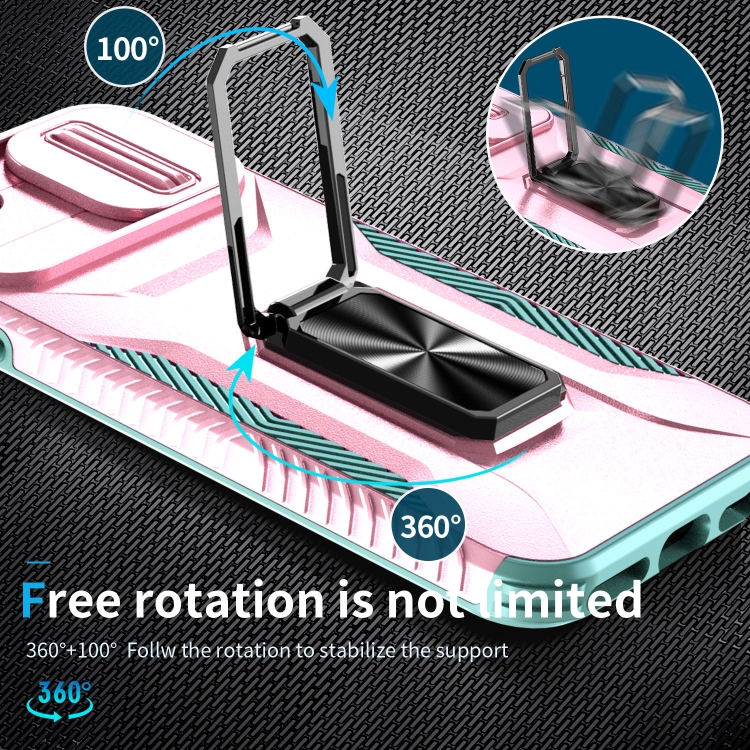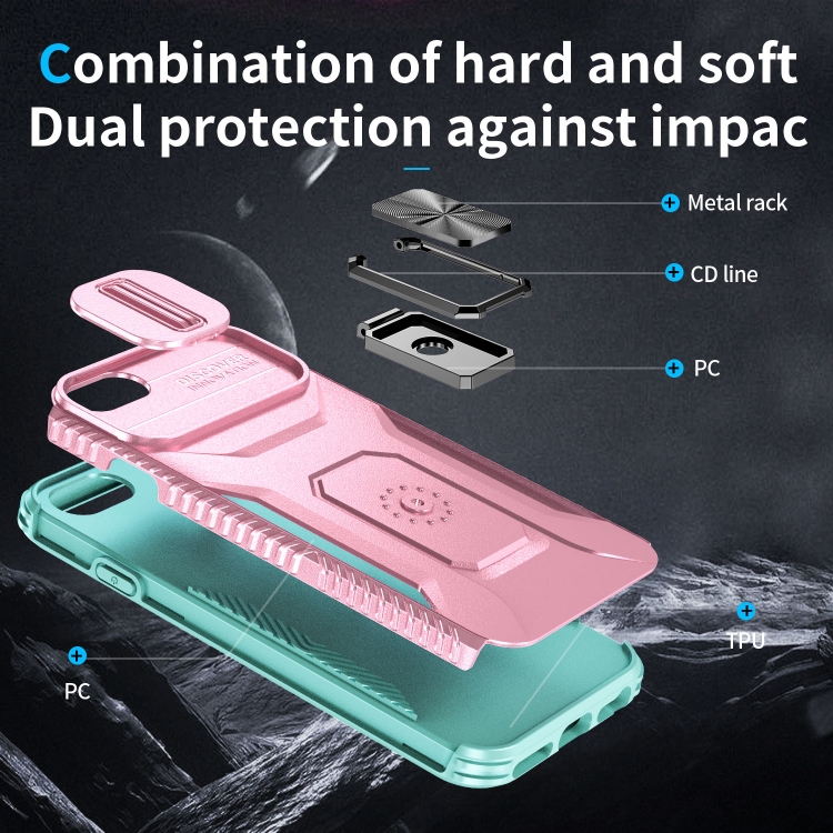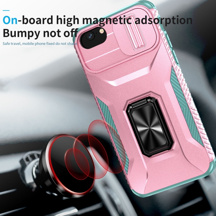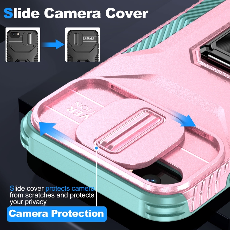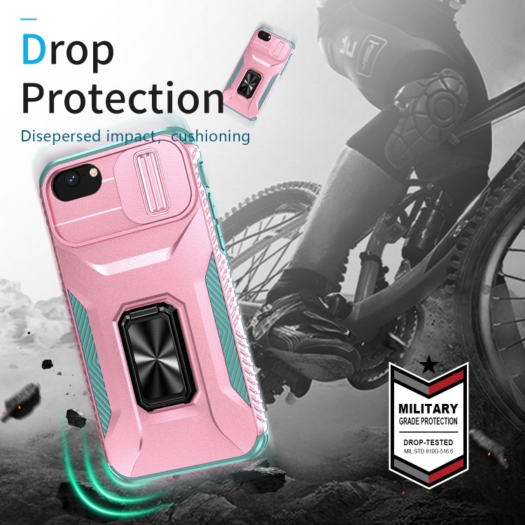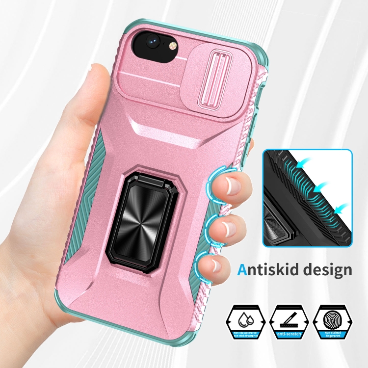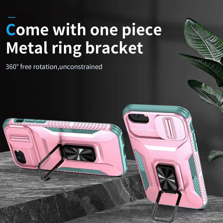 Funda para Teléfono iPhone 7 con Soporte Deslizante para Levas (Rosa + Gris Verde)