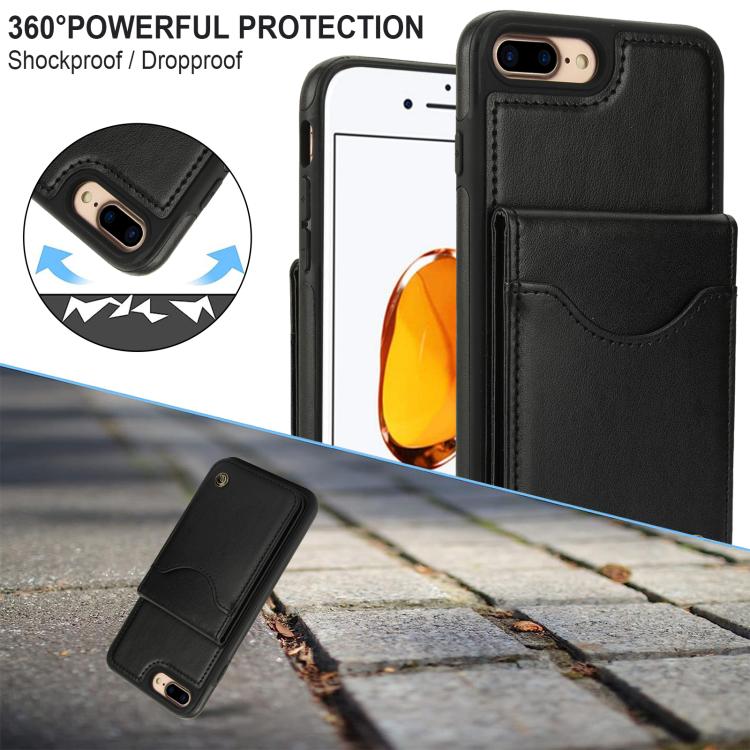 Funda para iPhone 7 Plus/8 Plus Awquer Cuero Tapa Vertical Tarjetas Soporte (Negro)