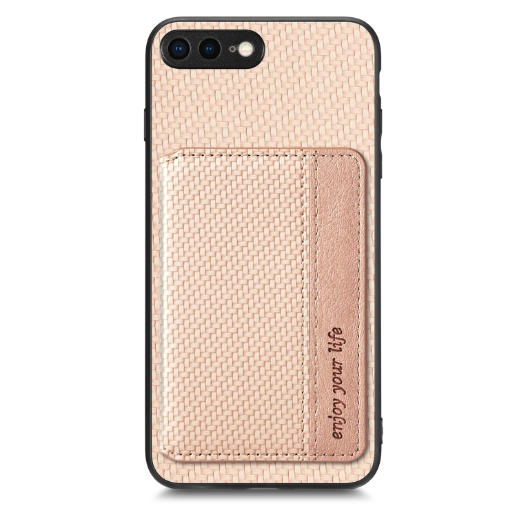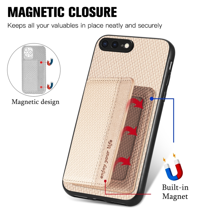 Caja de Teléfono para iPhone 7 Plus 8 Plus Bolsa de Tarjeta Magnética Fibra de Carbono (Caqui)