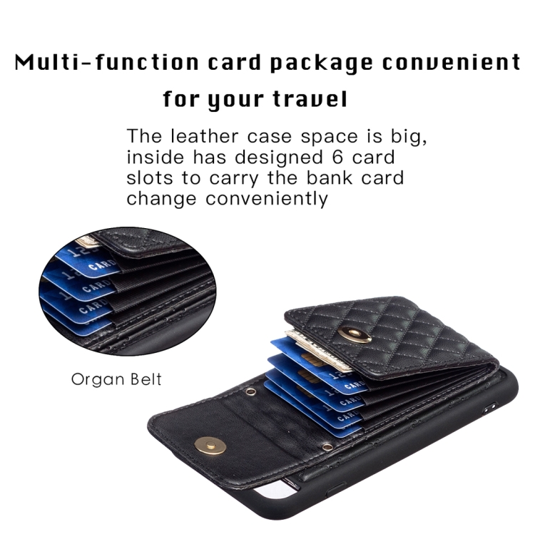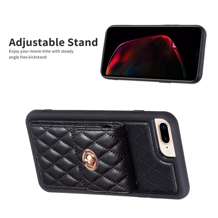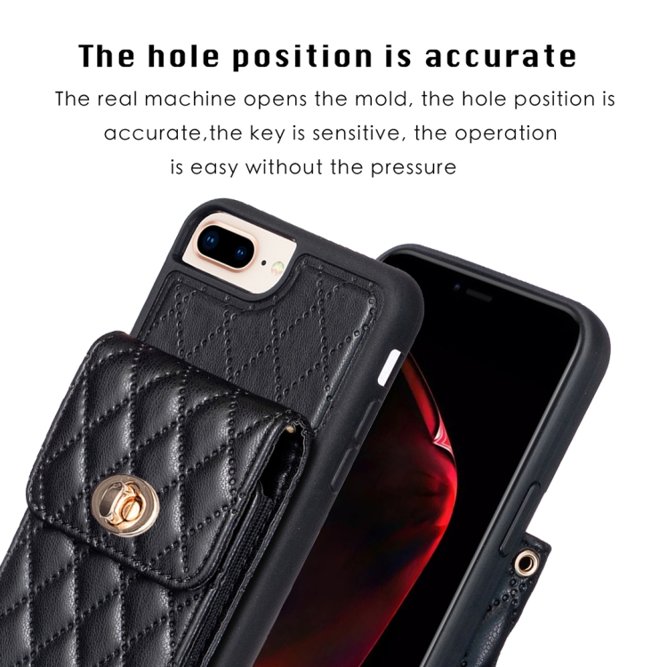 Caja de Teléfono Rombal para iPhone 7 Plus y 8 Plus con Hebilla de Metal Vertical (Negro)