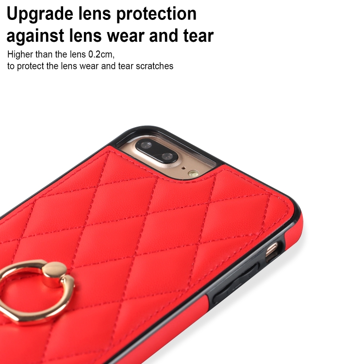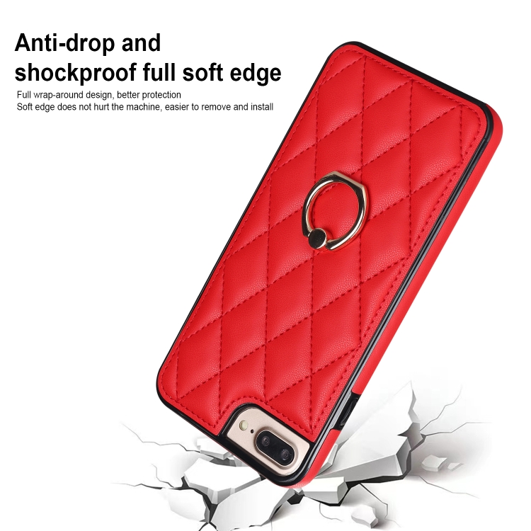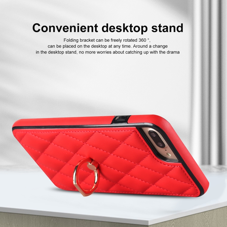 Estuche de Teléfono iPhone 7 Plus 8 Plus Cuero PU Rómbico Soporte Anillo (Rojo)