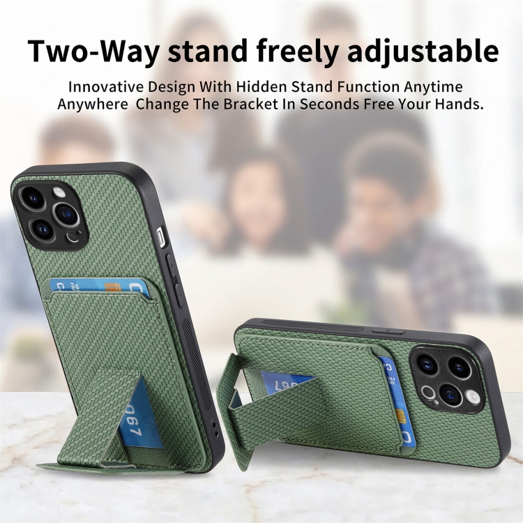 Funda para Teléfono iPhone 7 Plus/8 Plus con Soporte Plegable y Bolsa para Tarjetas Fibra de Carbono (Verde)