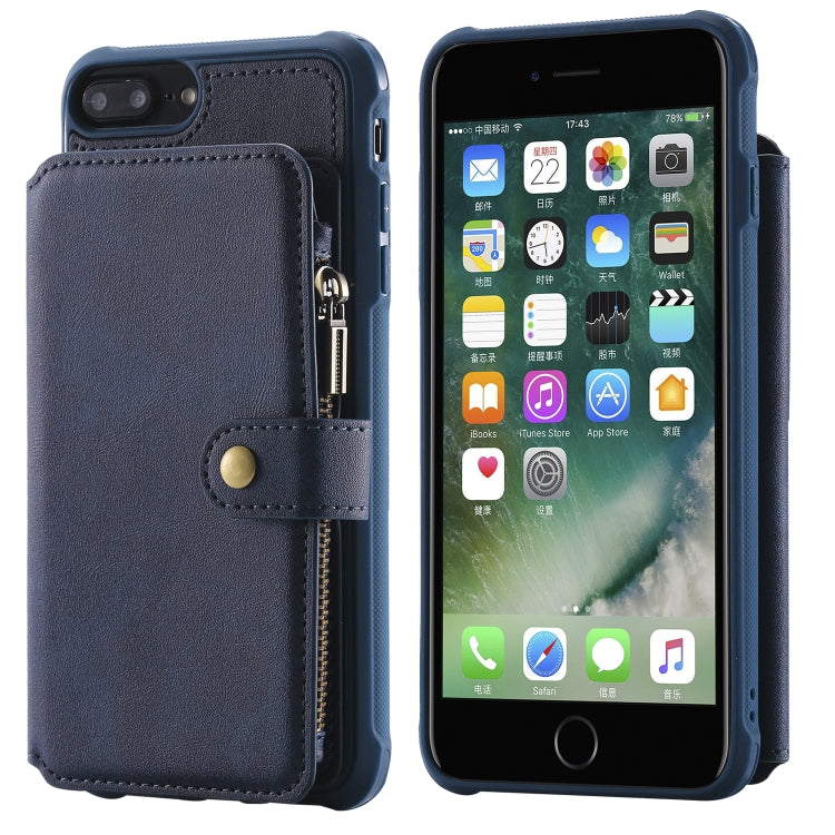 Funda Protectora para iPhone 7 Plus y 8 Plus con Cremallera, Ranuras para Tarjetas, Soporte y Función Billetera (Azul)