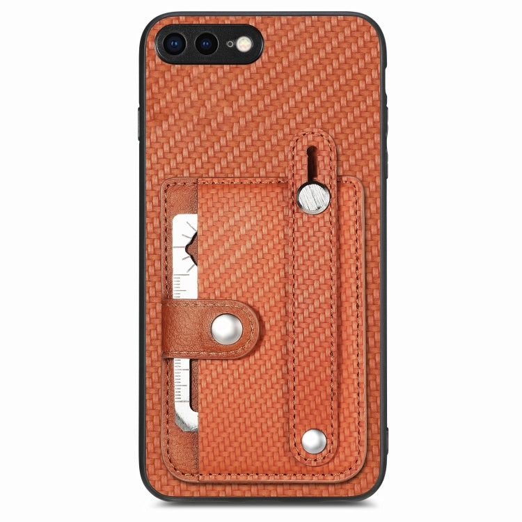 Funda para iPhone 7 Plus 8 Plus Muñequera Kickstand Tarjeta Monedero Contraportada Caja con Herramienta Cuchillo (Marrón)