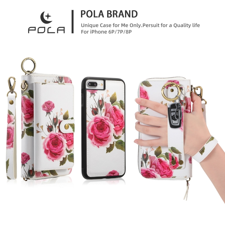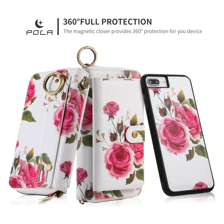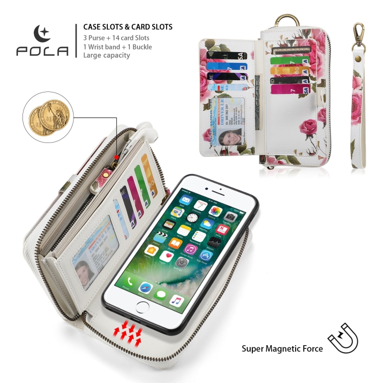 Funda para iPhone 7 Plus/8 Plus Pola Flower Cuero Billetera con Cremallera Multifuncional (Beige)
