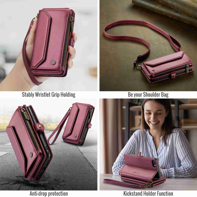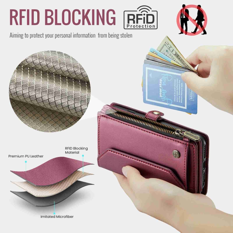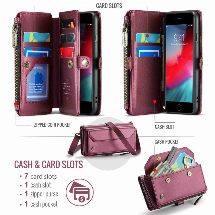 Funda para iPhone 8/7/6 Caseme C36 Cartera con Ranuras para Tarjetas Cremallera Cuero Antirrobo Rfid (Rojo Vino)