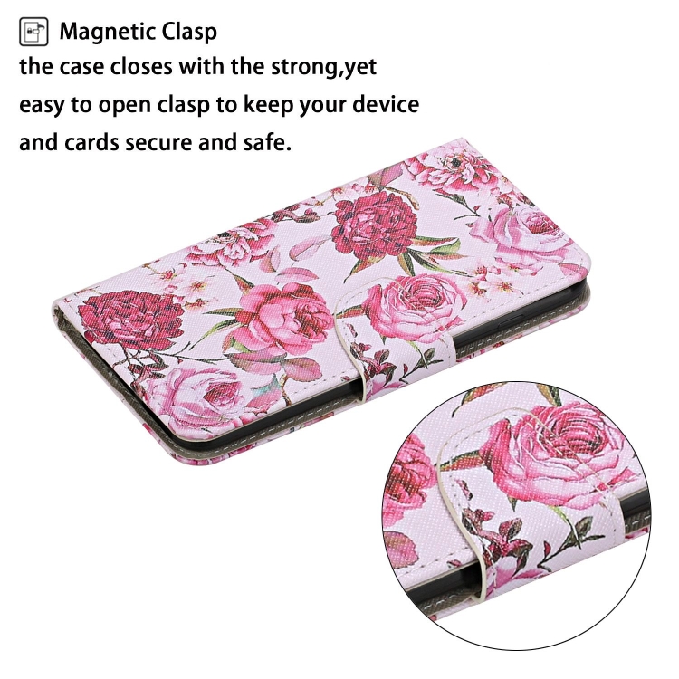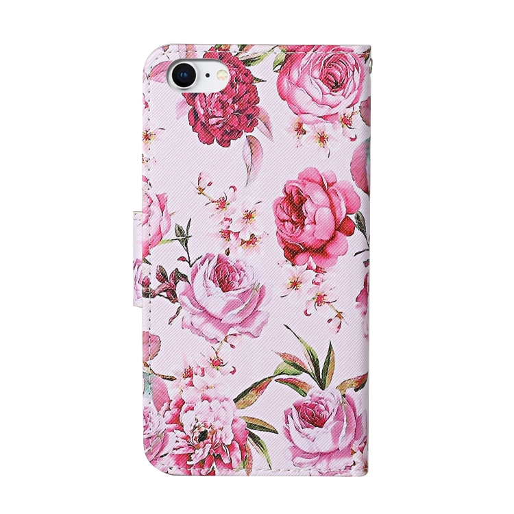 Estuche de Cuero Abatible Horizontal para iPhone 8/7 con Patrón Dibujo Coloreado, Soporte, Ranuras para Tarjetas y Billetera (Peony)