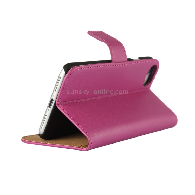 Funda de Cuero para iPhone 8 y 7 con Tapa Horizontal Genuina Dividida Soporte Ranuras y Billetera (Magenta)