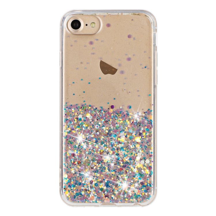 Funda para Teléfono TPU para iPhone 8/7 con Polvo de Brillo Noctilucente y Marco Transparente (Blanco)