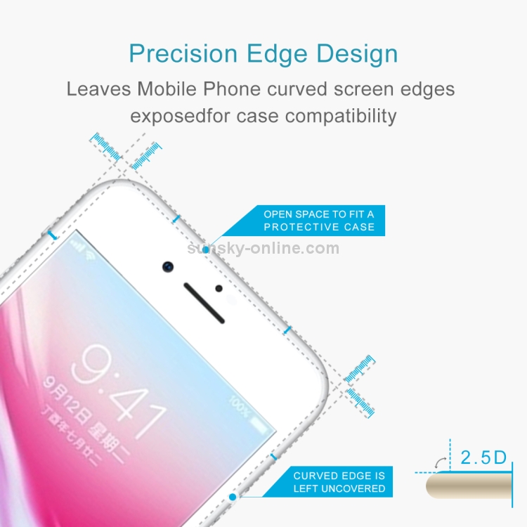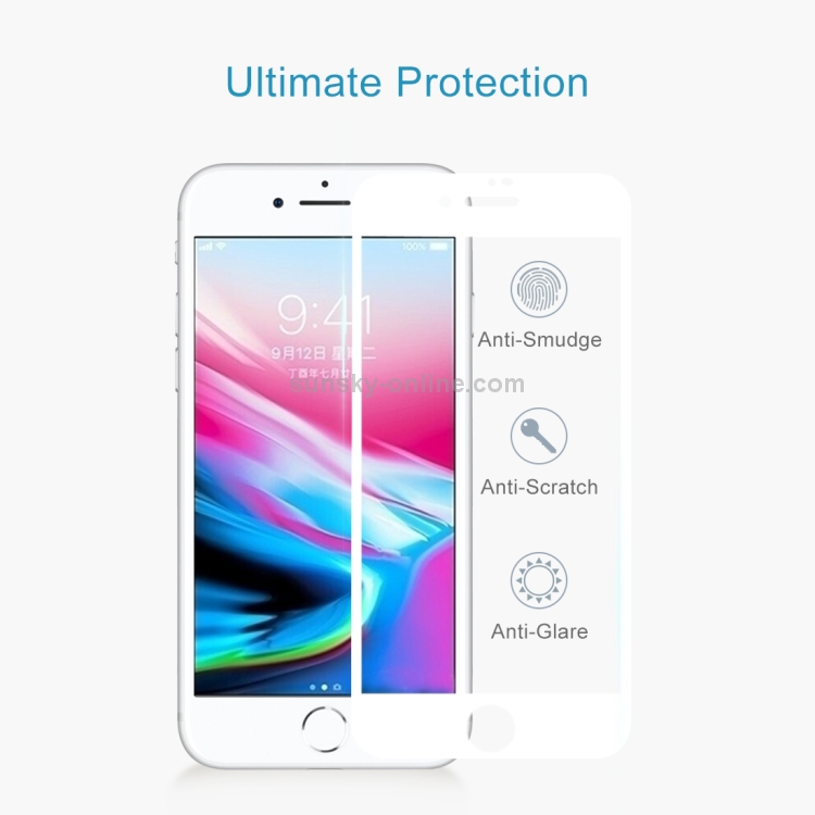 Protector de Pantalla Vidrio Templado iPhone 8 Plus 0.26mm 9H Dureza 2.5D Seda a Prueba de Explosiones (Blanco)