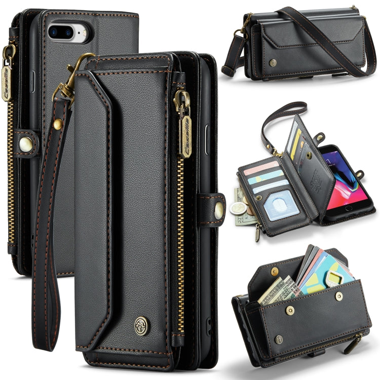 Estuche para teléfono Caseme C36 para iPhone 8 Plus 7 Plus 6 Plus Cartera con ranuras para tarjetas y cremallera Cuero Antirrobo Rfid (Negro)