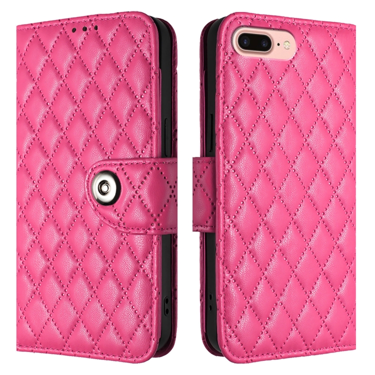 Funda para Teléfono iPhone 8 Plus 7 Plus 6S Plus Tapa Cuero Textura Rómbica Cordón (Rojo Rosa)