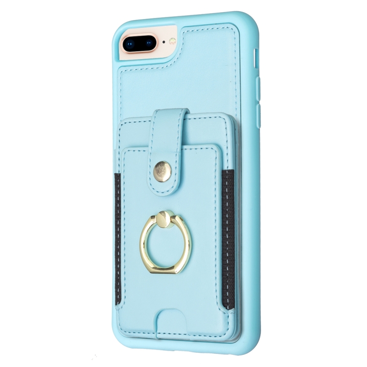 Funda para Teléfono Bf27 para iPhone 8 Plus y 7 Plus con Soporte para Tarjeta y Anillo de Metal (Azul)