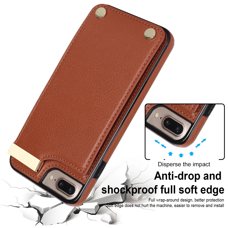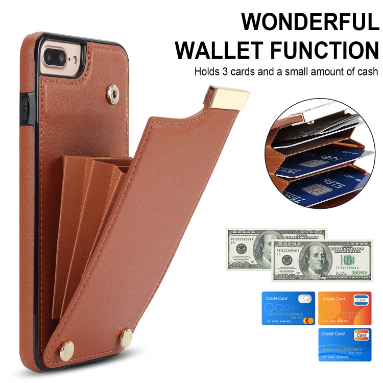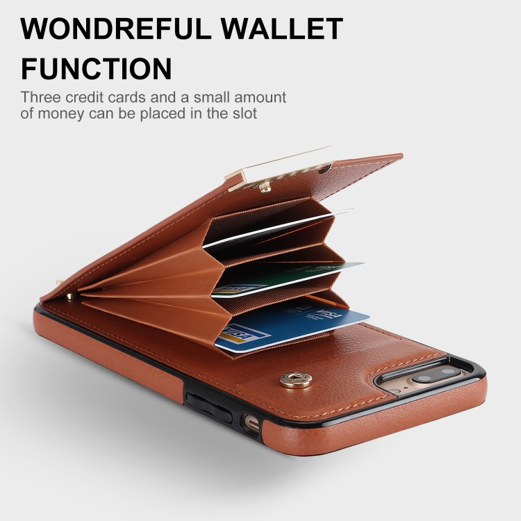 Caja de teléfono para iPhone 8 Plus y 7 Plus con ranuras para tarjetas y hebilla de metal (Marrón)