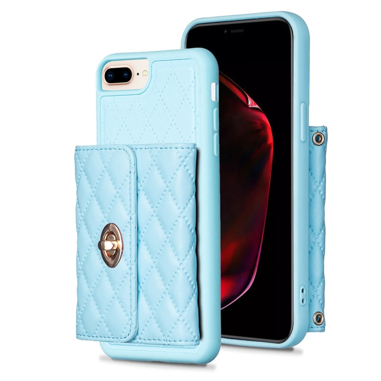Funda Cartera para iPhone 8 Plus 7 Plus con Hebilla de Metal Horizontal Estuche de Cuero Rómbico (Azul)