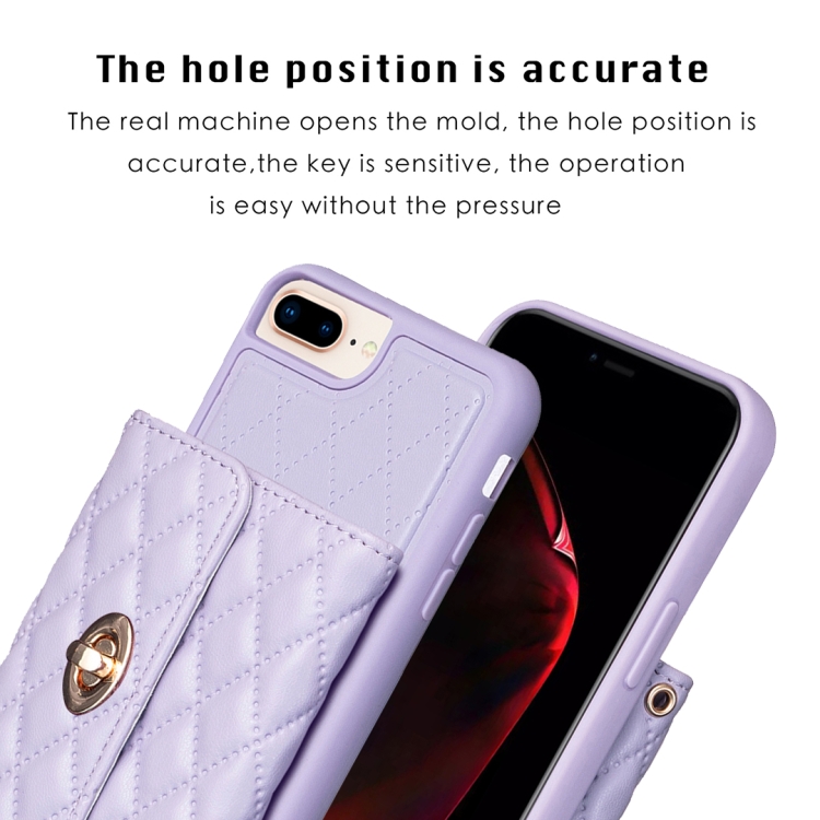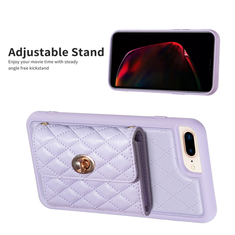Cartera para iPhone 8 Plus / 7 Plus con Hebilla de Metal Horizontal Estuche de Cuero Rómbico (Púrpura)