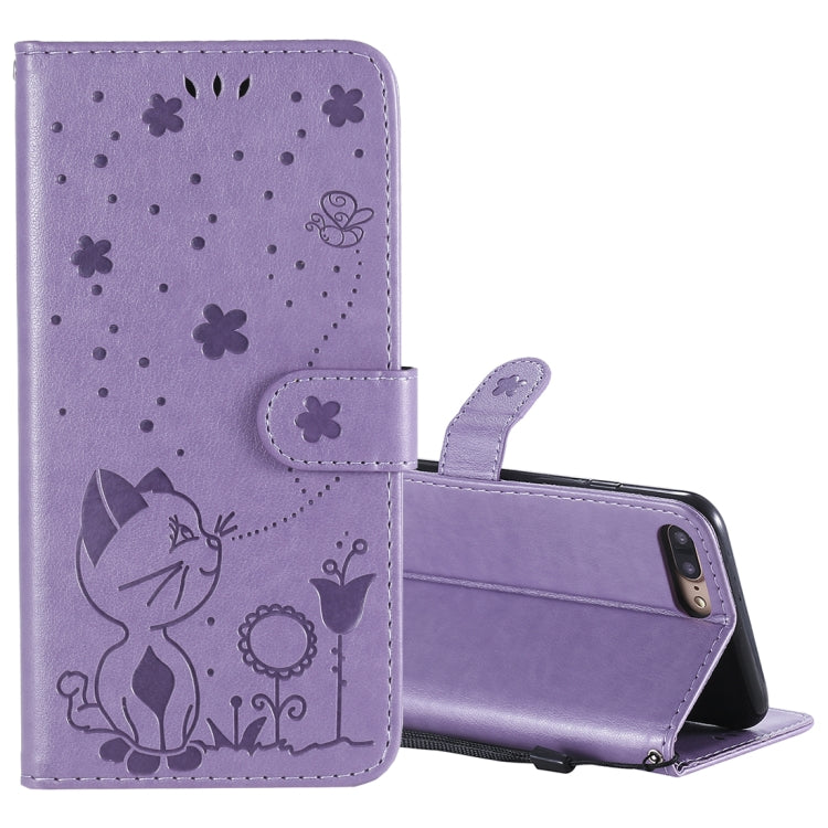 Funda de Cuero Cat Bee para iPhone 8 Plus y 7 Plus con Tapa Horizontal, Soporte, Ranuras para Tarjetas y Billetera (Morado)
