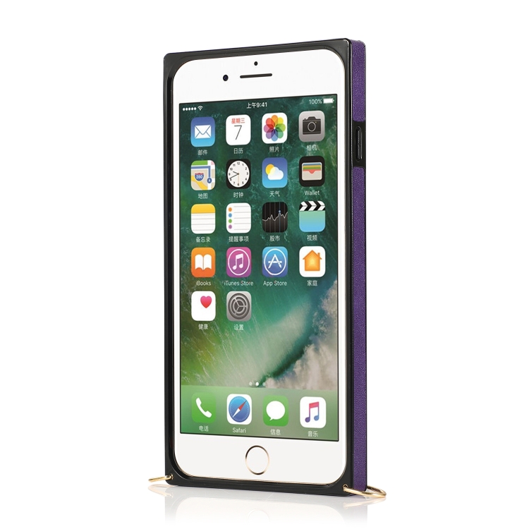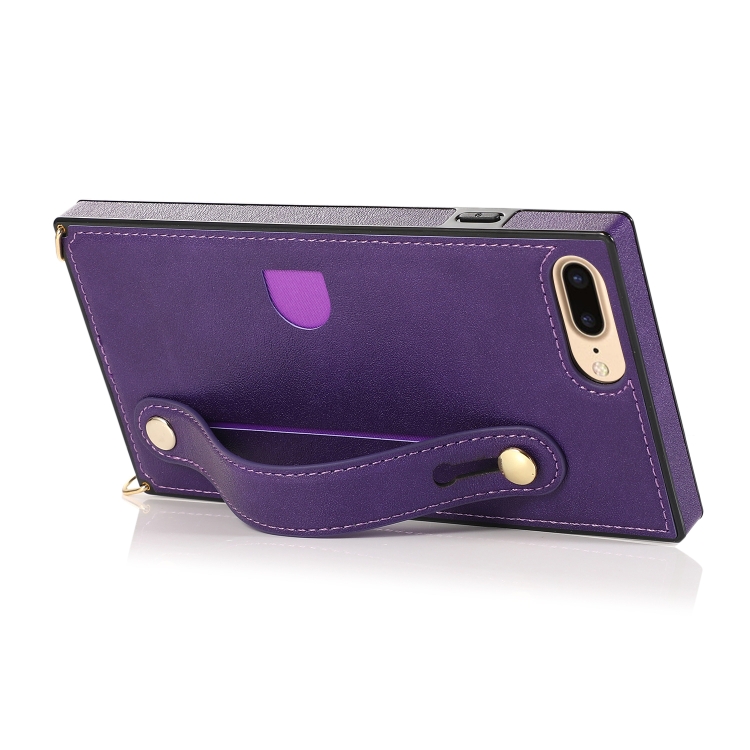 Funda para iPhone 8 Plus / 7 Plus con Correa de Muñeca PU y TPU, Soporte, Ranura para Tarjeta (Púrpura)