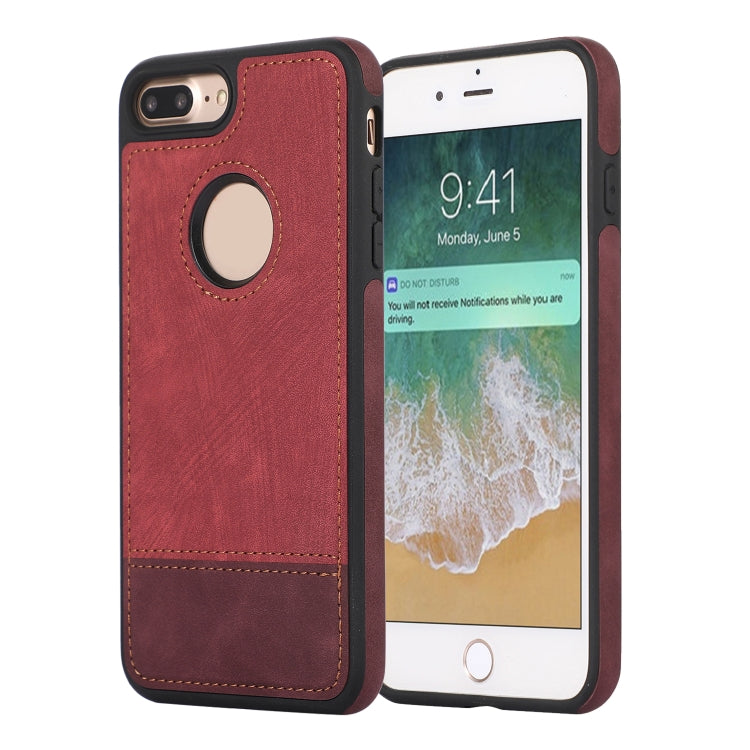 Funda para iPhone 8 Plus 7 Plus Empalme Costura Caja de Teléfono de PU con Recorte (Rojo)