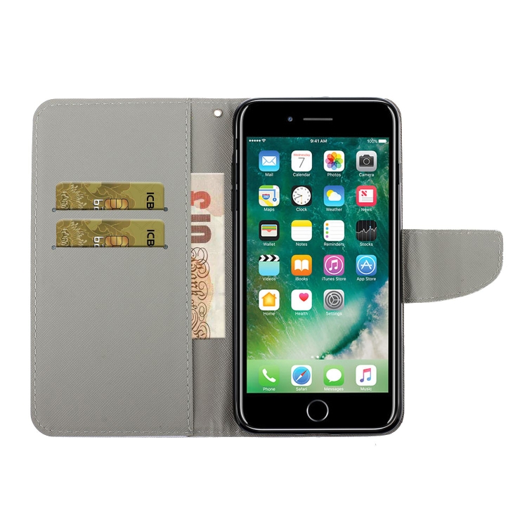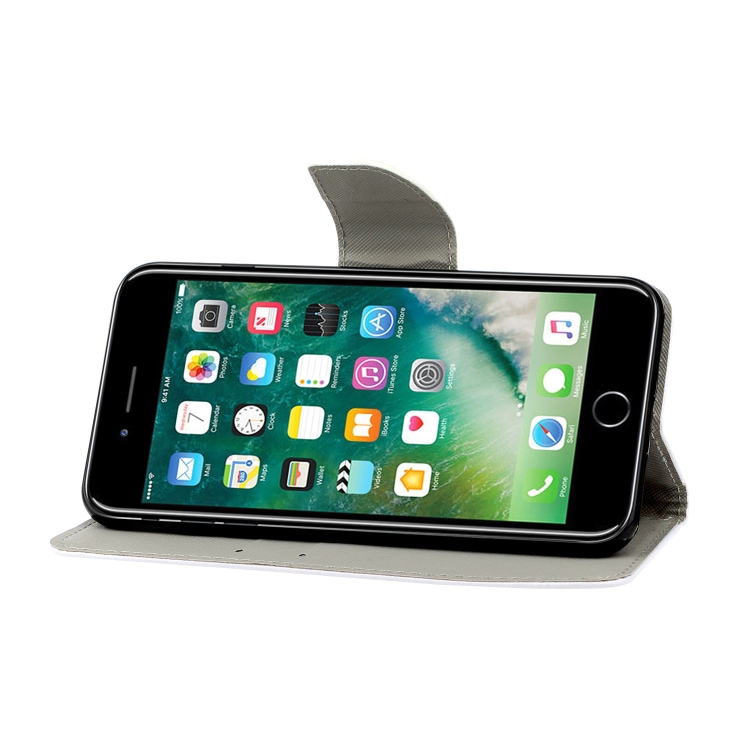 Estuche de Cuero Abatible Horizontal para iPhone 8 Plus 7 Plus con Soporte Ranuras Tarjetas Billetera (Mariposa de Flor Roja)