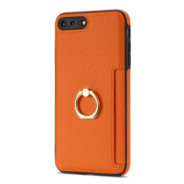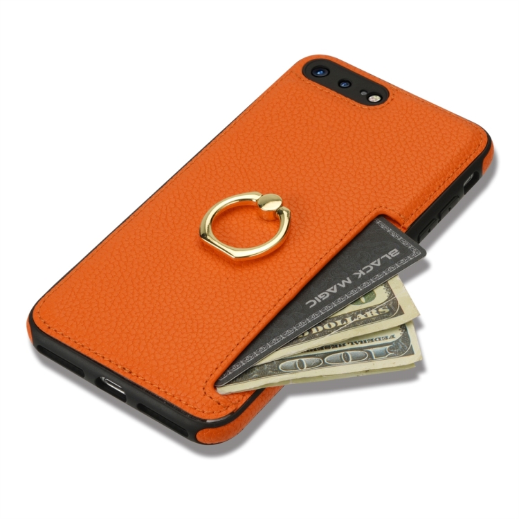 Estuche para teléfono iPhone 8 Plus/7 Plus con parte Trasera de cuero Litchi y tarjeta de anillo (Naranja)