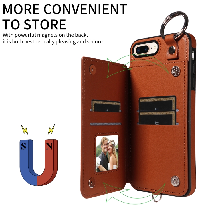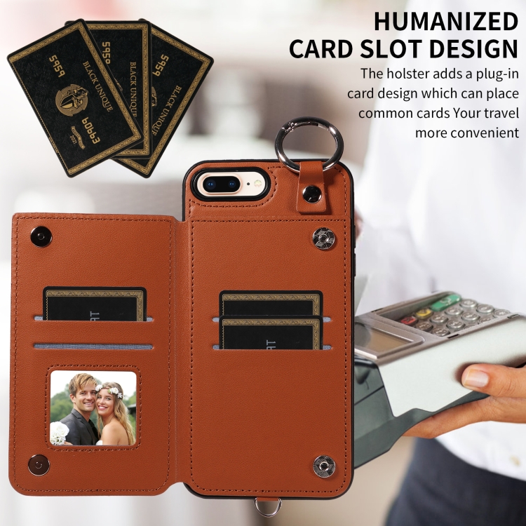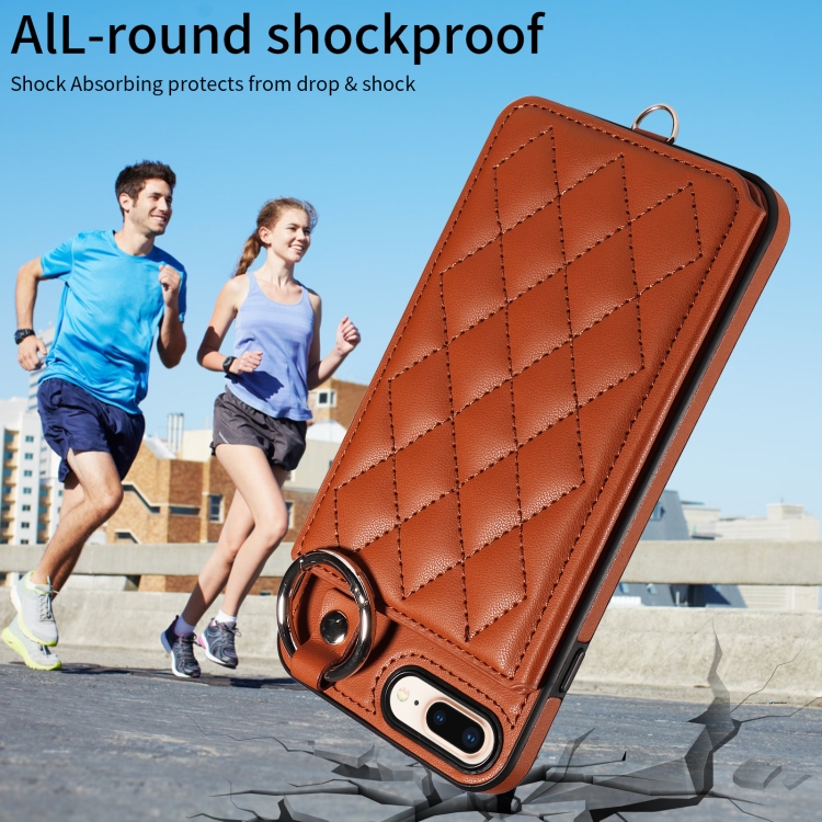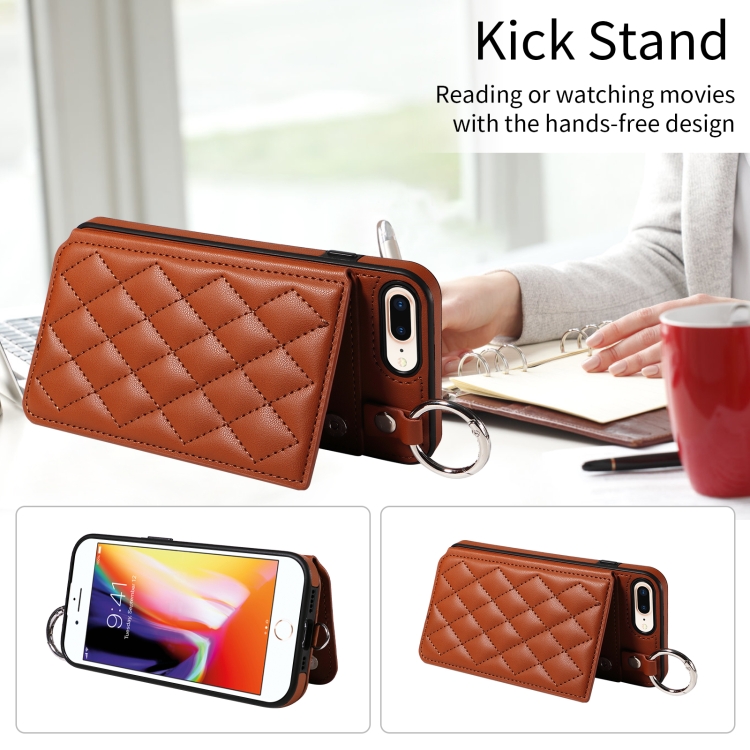 Funda para Teléfono iPhone 8 Plus 7 Plus Bolsa para Tarjetas Textura Rómbica Cordón Corto (Marrón)