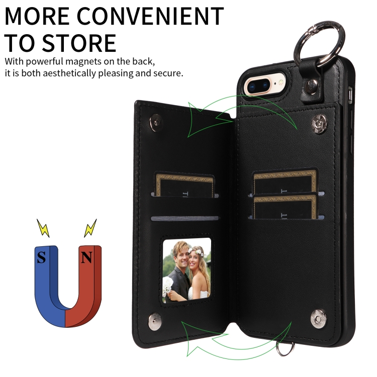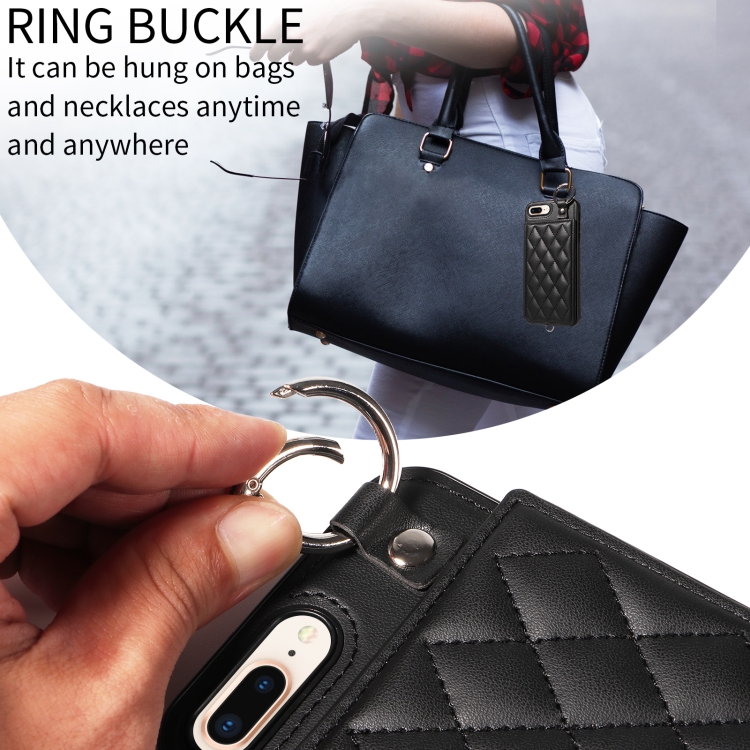 Funda para Teléfono iPhone 8 Plus 7 Plus con Bolsa para Tarjetas Textura Rómbica y Cordón Corto (Negro)