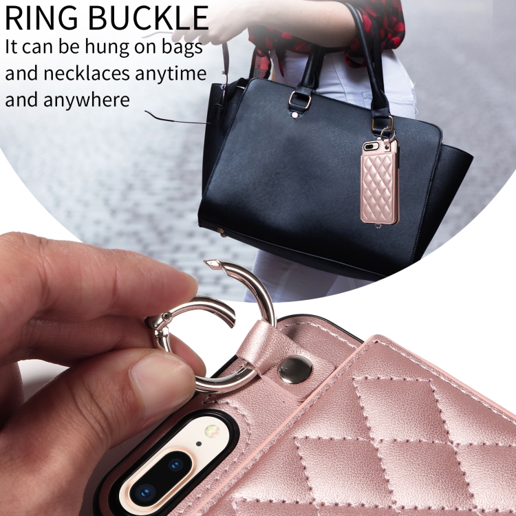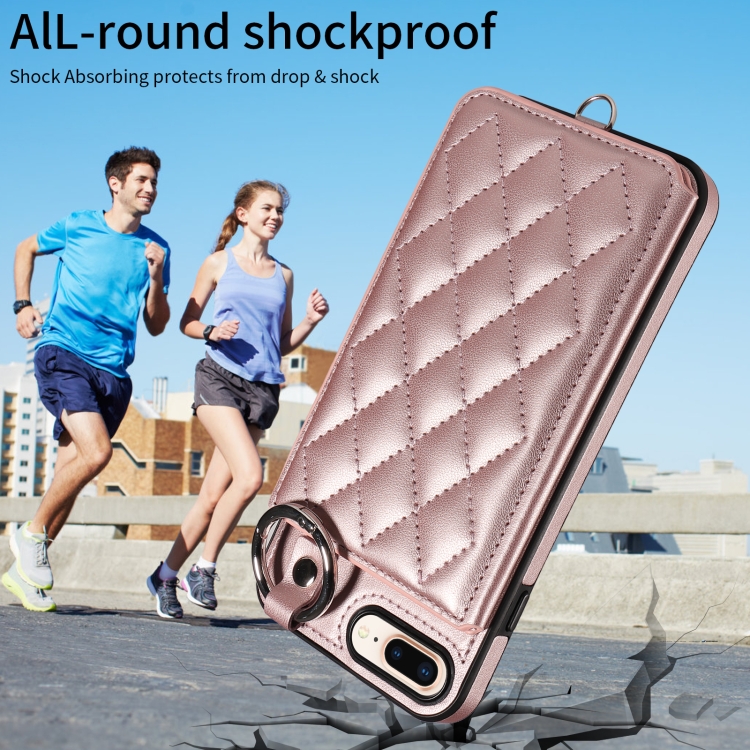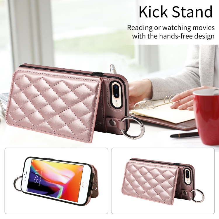 Funda para Teléfono iPhone 8 Plus/7 Plus con Bolsa para Tarjetas Textura Rómbica y Cordón Corto (Oro Rosa)