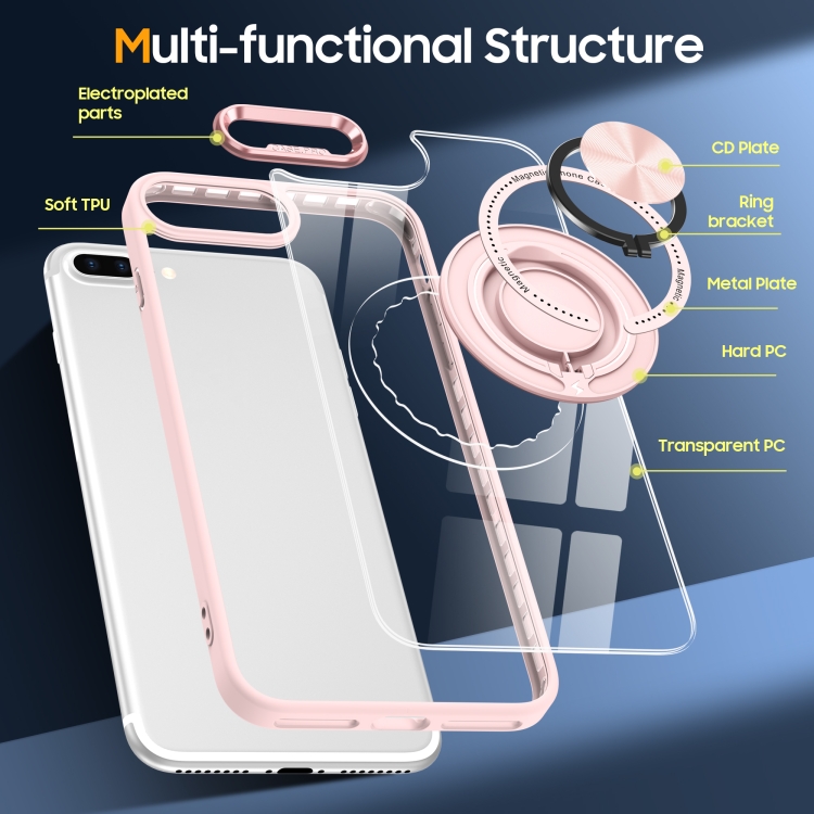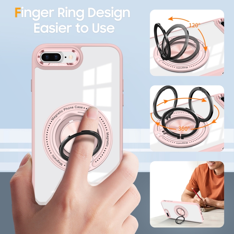 Funda para Teléfono iPhone 8 Plus/7 Plus con Soporte de Anillo Giratorio Magnético (Rosa)