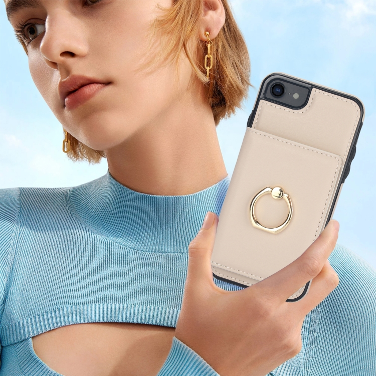 Funda para Teléfono iPhone 8 Plus/7 Plus con Soporte para Anillo y Tarjeta Antirrobo Rfid (Blanco)