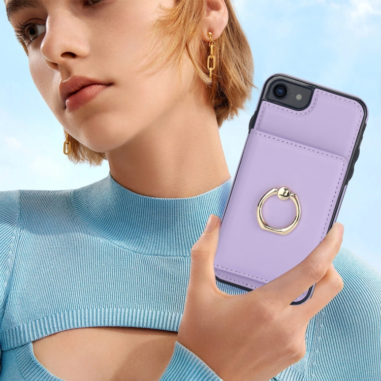 Funda para Teléfono iPhone 8 Plus 7 Plus con Soporte para Anillo y Tarjeta Antirrobo Rfid (Púrpura)