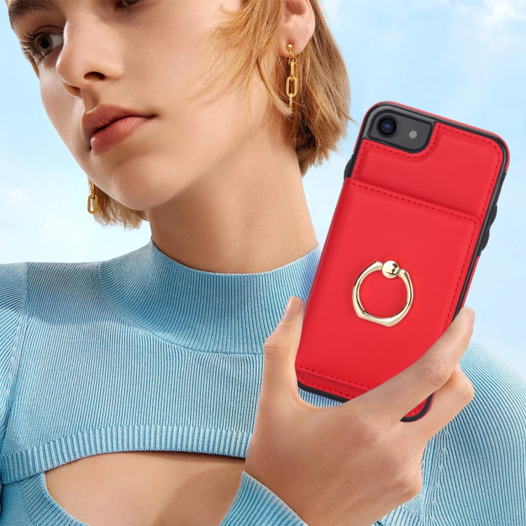 Funda para Teléfono iPhone 8 Plus/7 Plus con Soporte para Anillo y Tarjeta Antirrobo Rfid (Rojo)