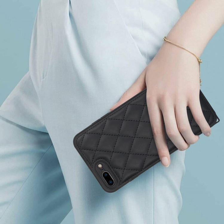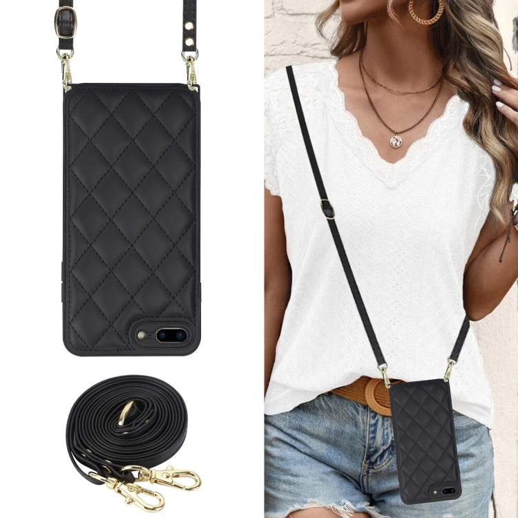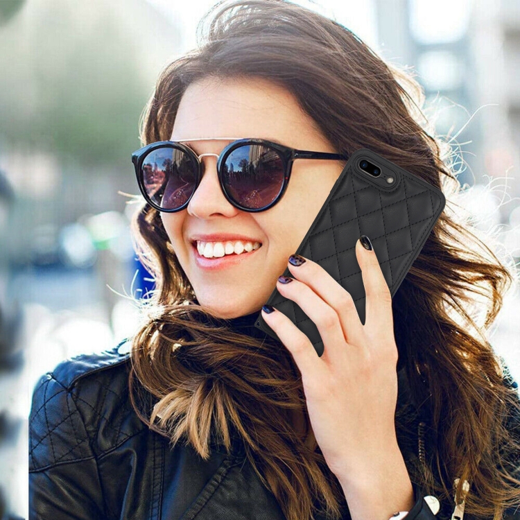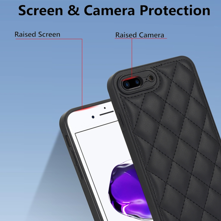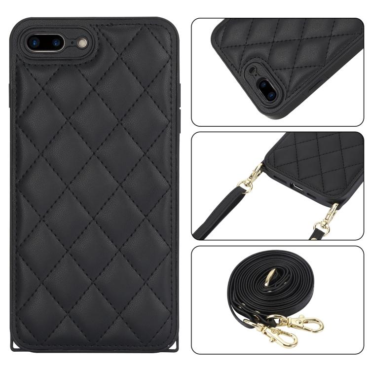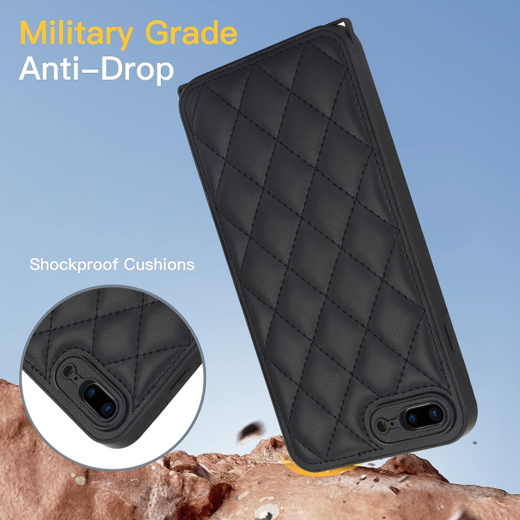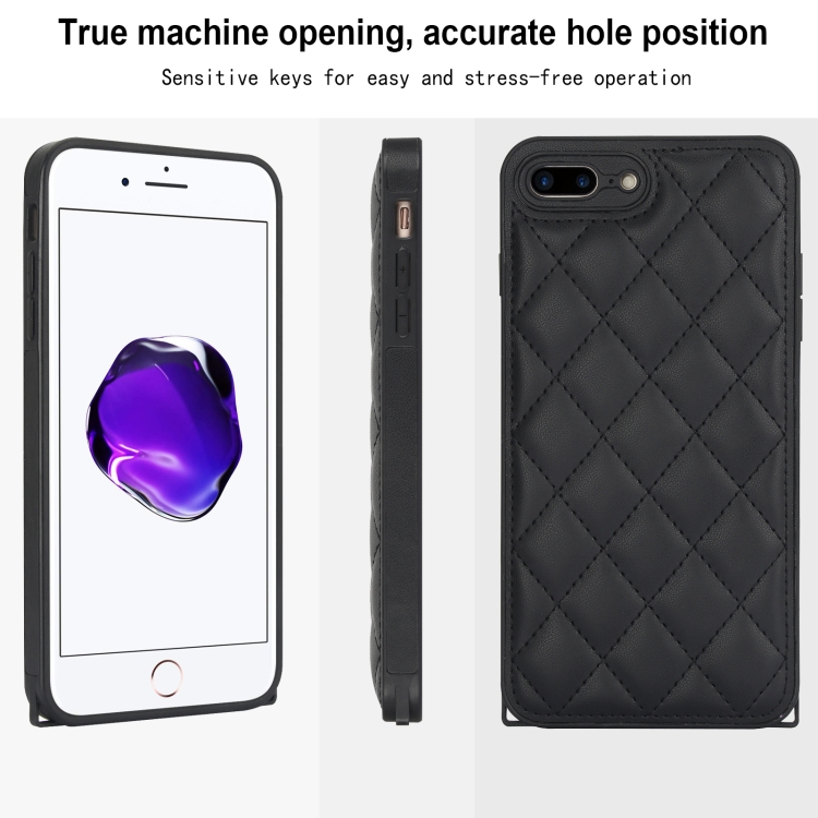 Funda para Teléfono iPhone 8 Plus/7 Plus Textura Rómbica con Cordón Doble (Negro)